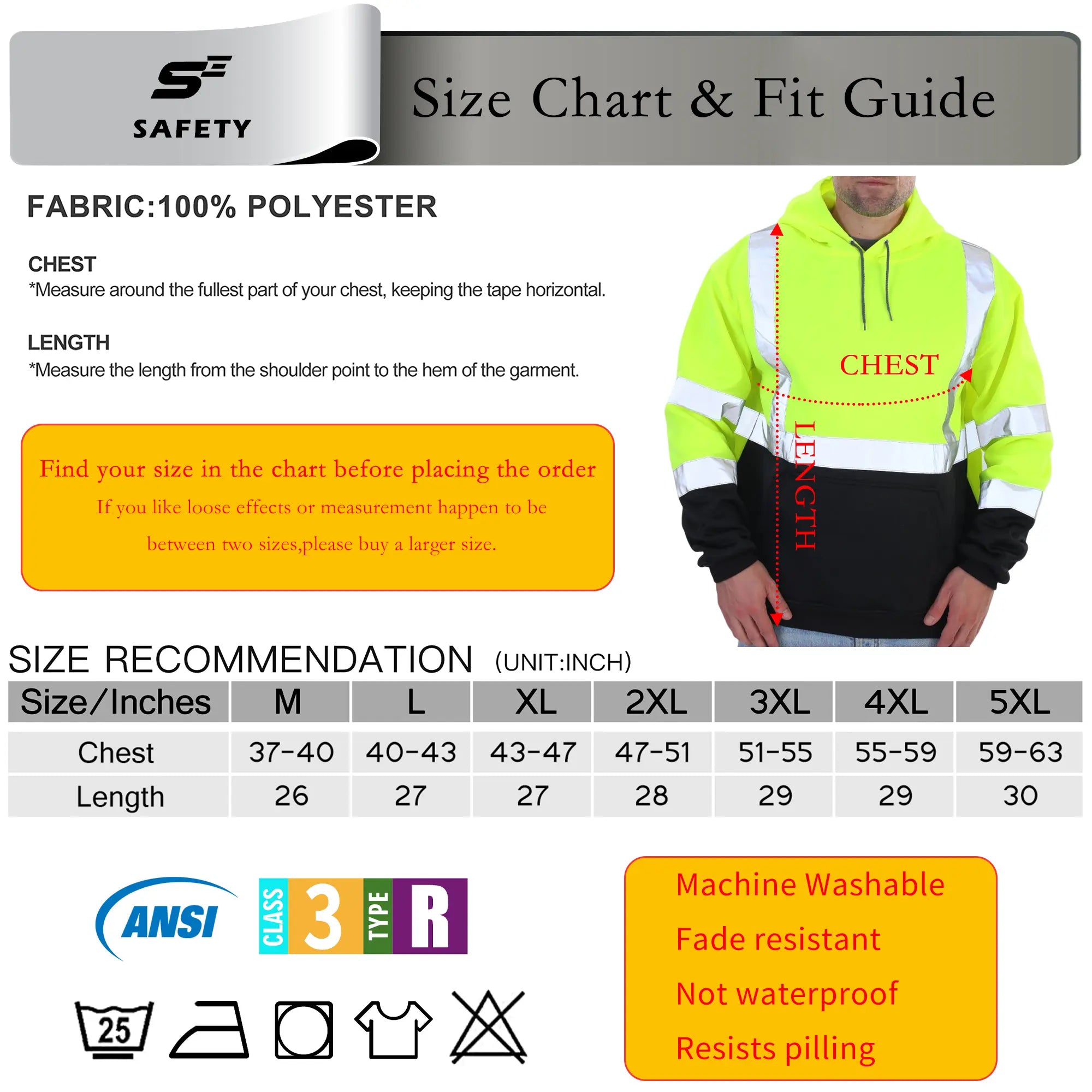 Don't compromise on safety. This hoodie is fully certified to ANSI/ISEA 107-2020 Type R, Class 3 standards. The bright, fluorescent material combined with 2" Silver Reflective Tape ensures you remain highly conspicuous to vehicle operators and other workers, even in low-light conditions.
