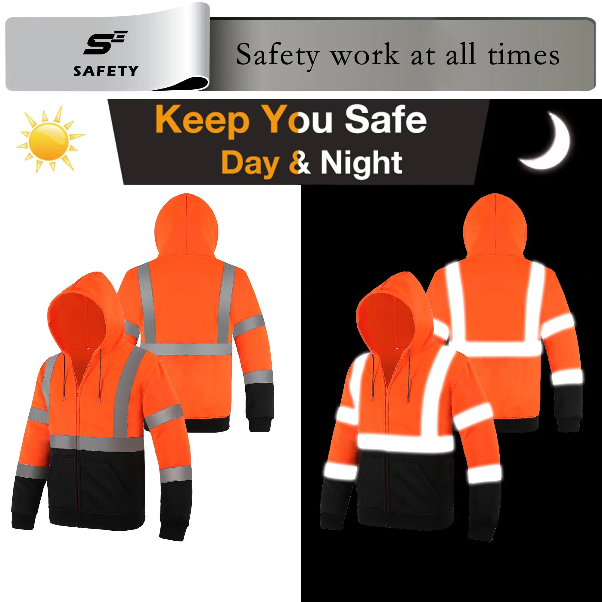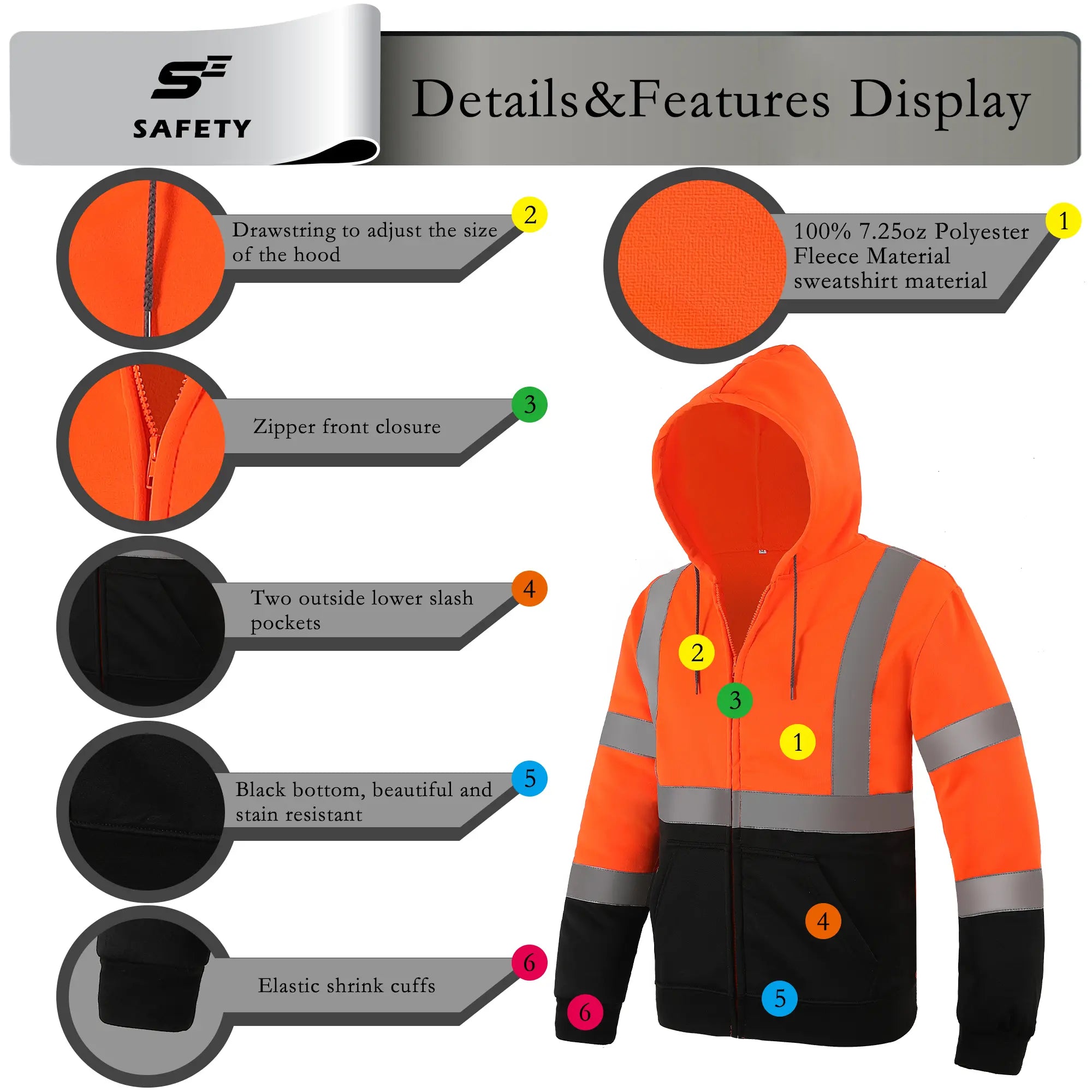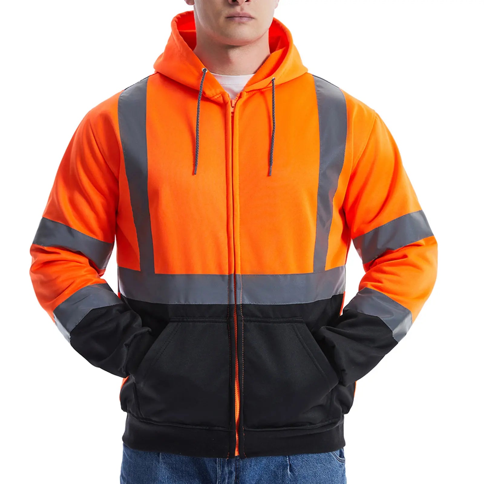 Your safety is our priority. This safety hoodie is fully certified to meet ANSI/ISEA 107-2020 Type R, Class 3 standards. The combination of its bright fluorescent color and prominent 2" silver reflective tape ensures you are clearly visible to motorists and equipment operators from a distance, significantly reducing workplace risks.
