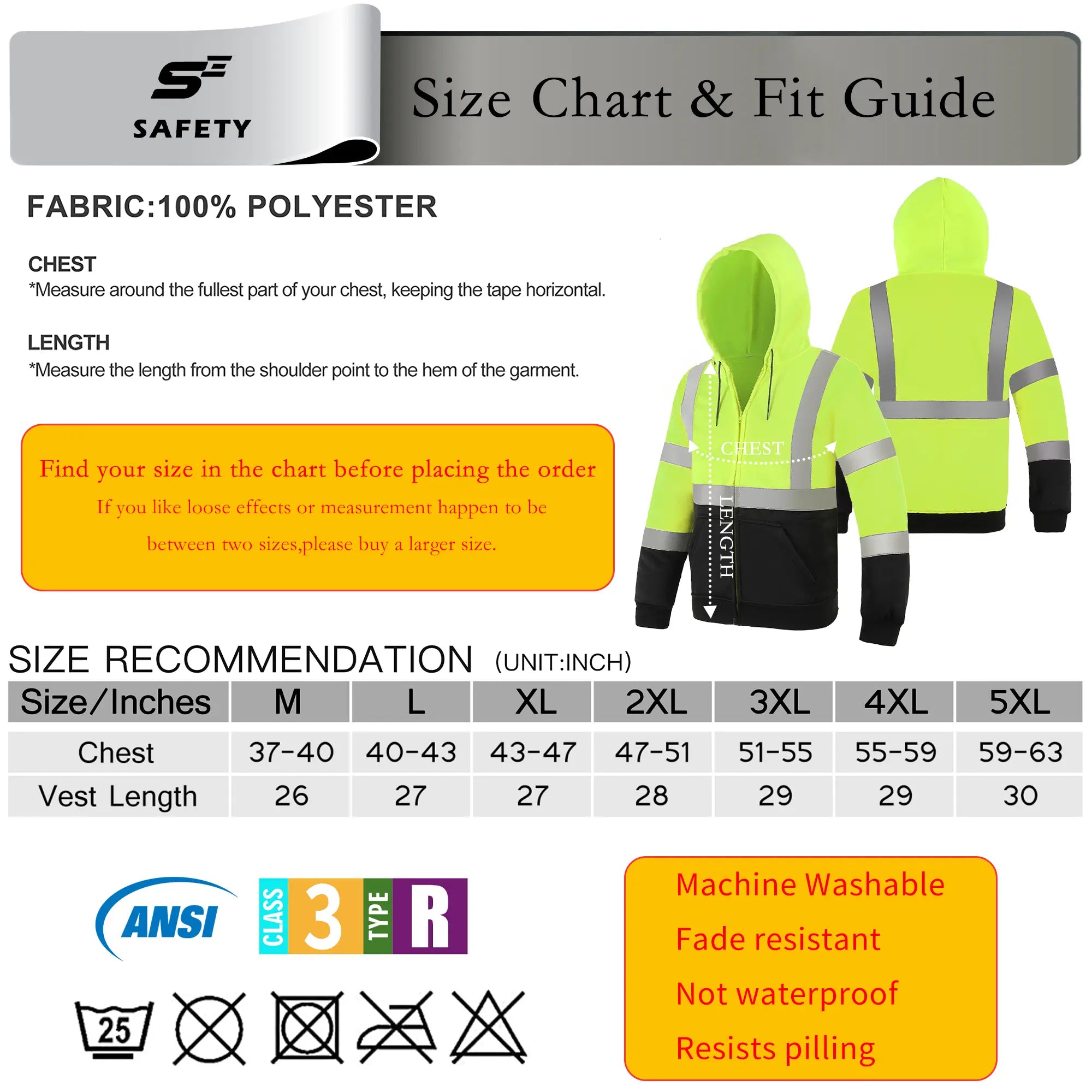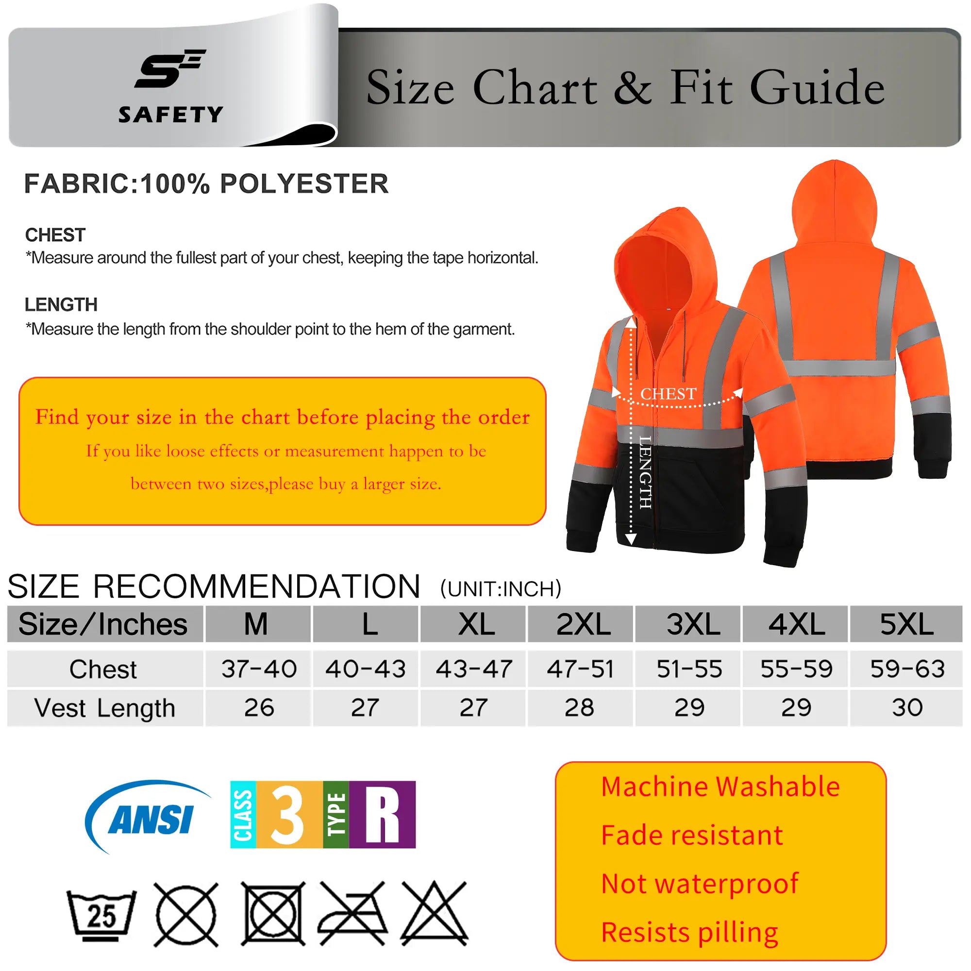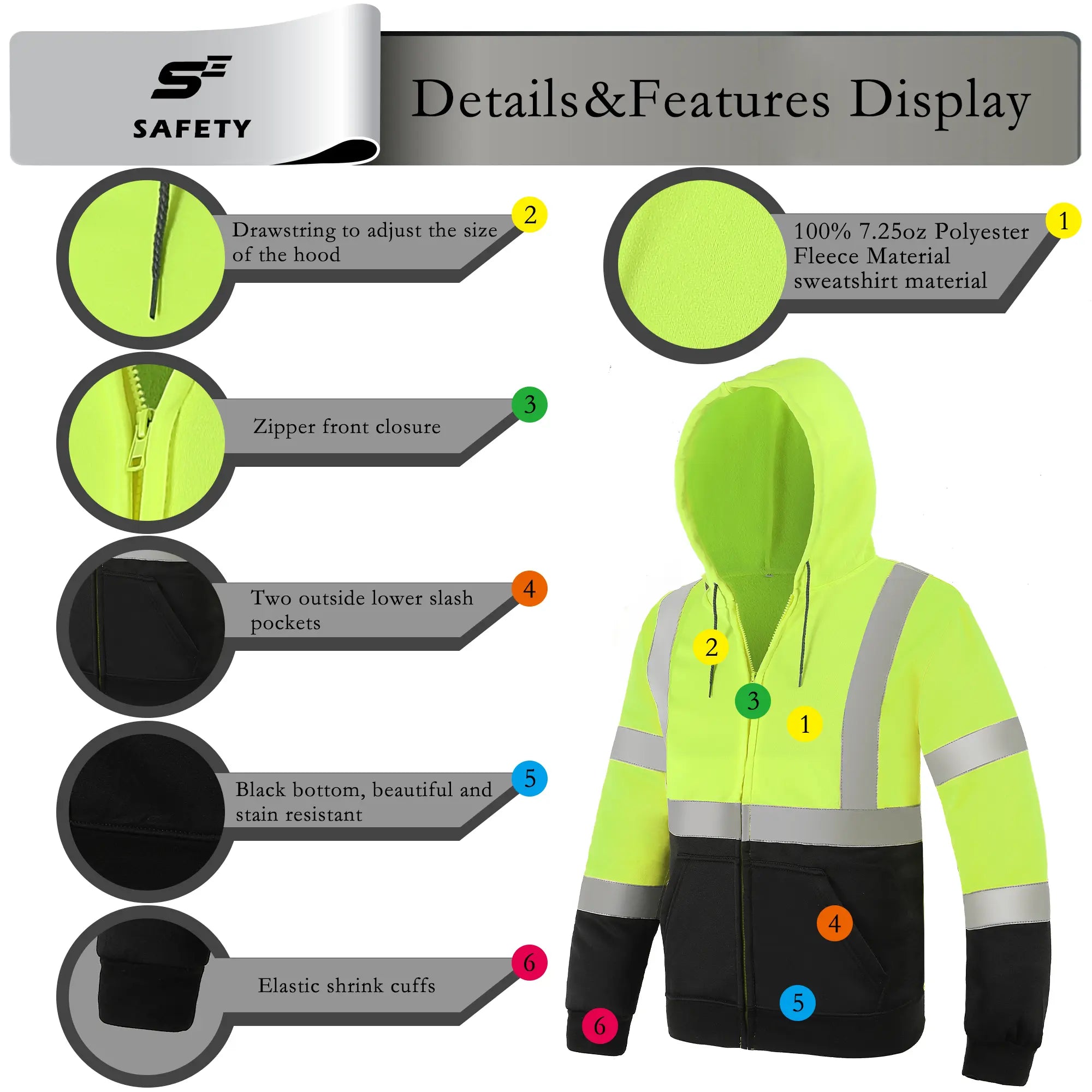 Your safety is our priority. This safety hoodie is fully certified to meet ANSI/ISEA 107-2020 Type R, Class 3 standards. The combination of its bright fluorescent color and prominent 2" silver reflective tape ensures you are clearly visible to motorists and equipment operators from a distance, significantly reducing workplace risks.
