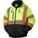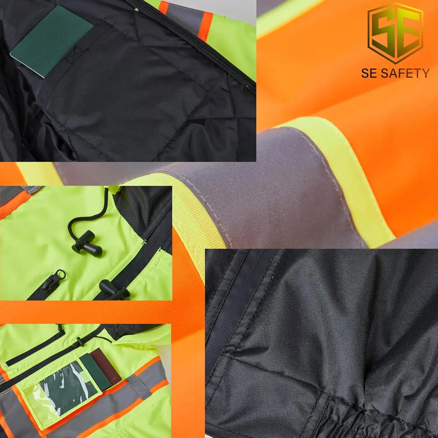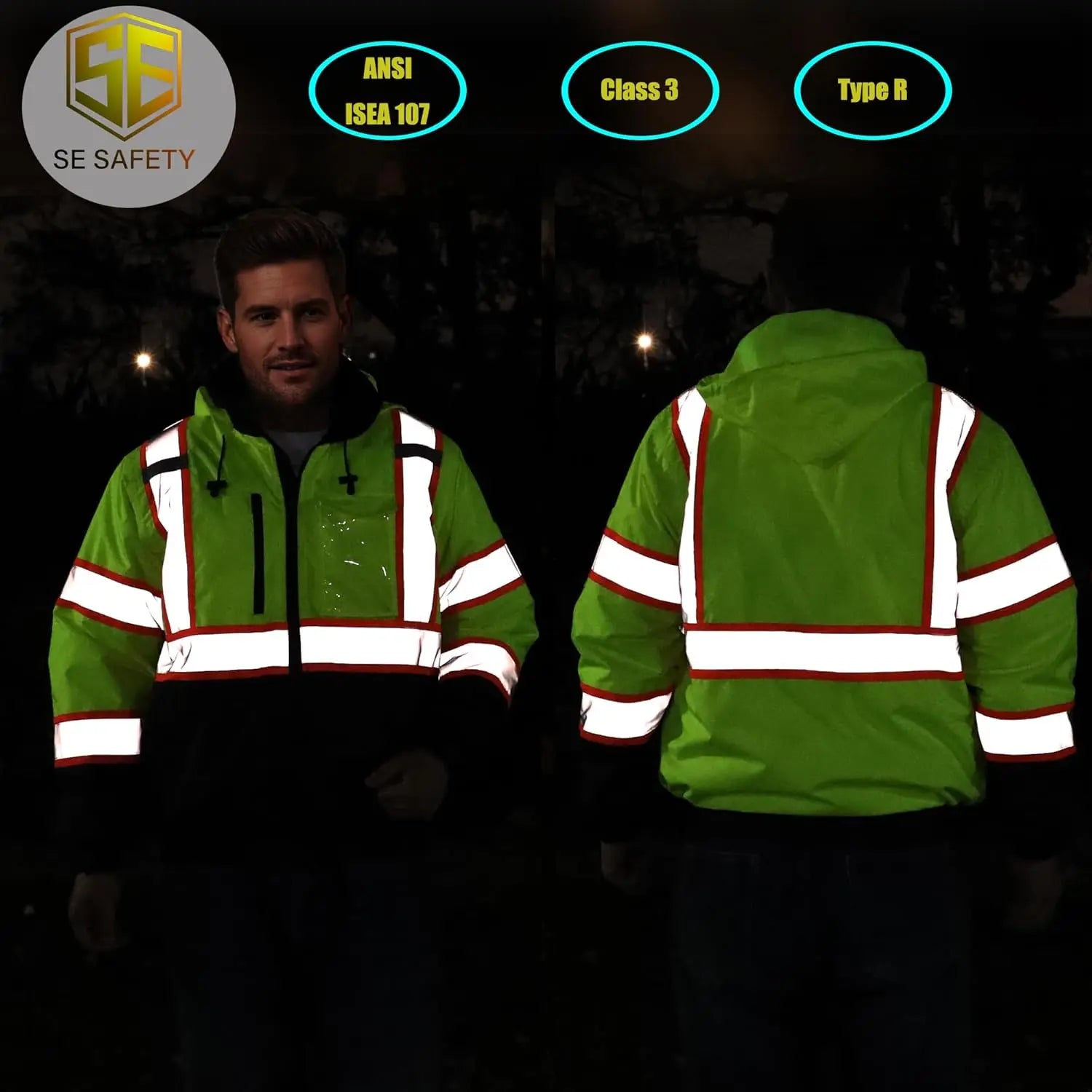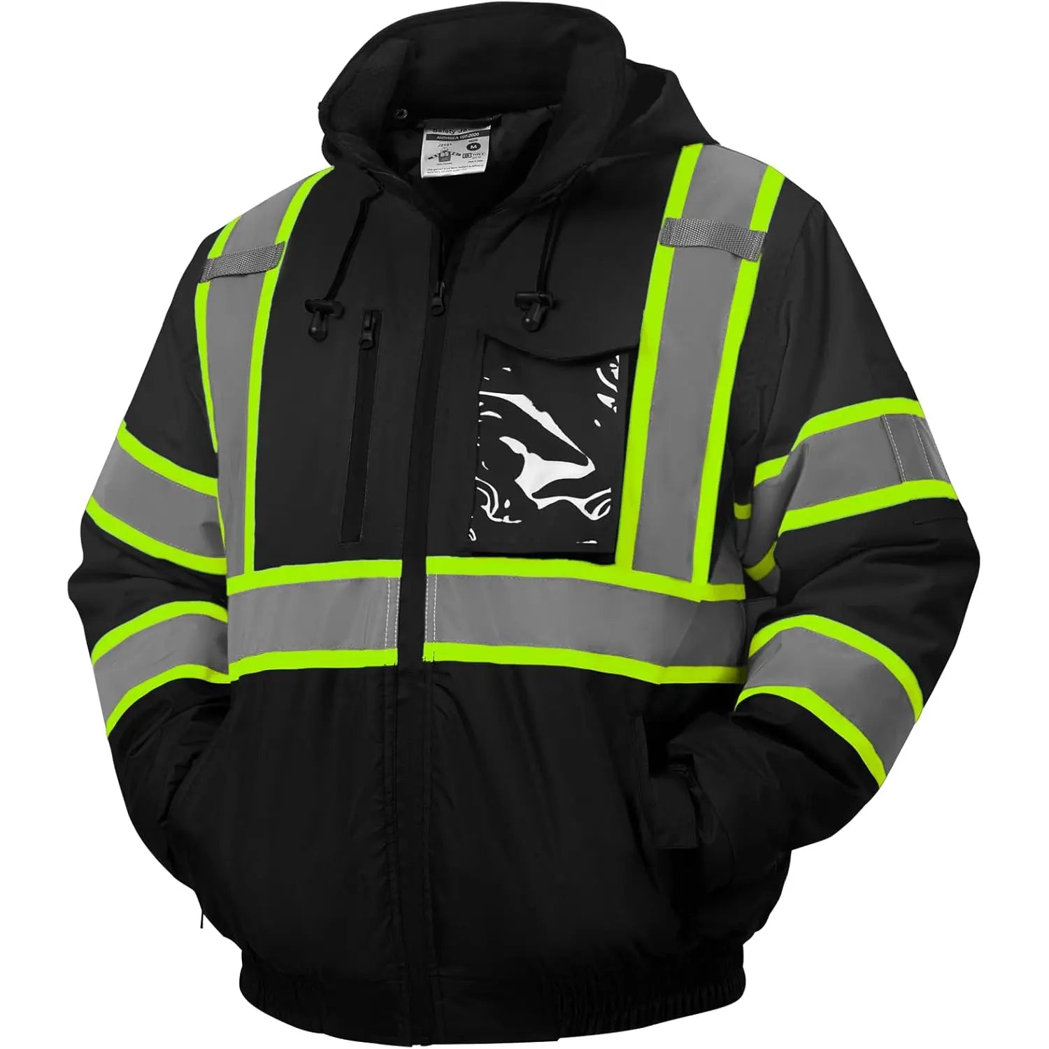 Constructed from durable 100% waterproof bomber material, it features a PU-coated shell and fully sealed seams to block out rain and moisture. Certified to ANSI/ISEA 107-2020 Class 3 / Class 2 standards, this jacket ensures dependable visibility in high-risk and low-light environments.